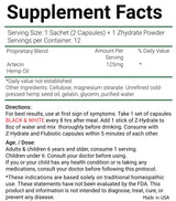 A: Adults take 2 capsules (one black and one white) all at once. The second step is to add 1 stick of Z-Hydrate to 8oz of water and mix thoroughly before drinking. Take the Flubiotic capsules and the Z-Hydrate within 5 minutes of each other.